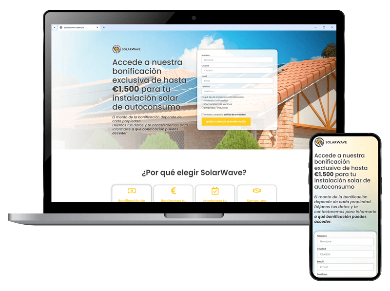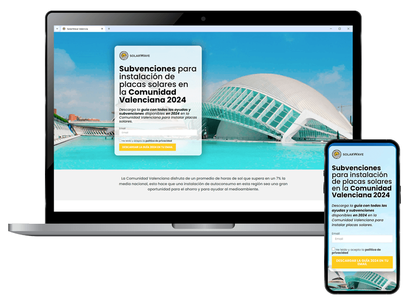 Desarrollamos una guía descargable específica para la zona de influencia de SolarWave. Los propietarios que la descargaban entraban en una secuencia de email marketing que los acercaba progresivamente a la decisión de instalar. Este canal captaba leads en una etapa más temprana del proceso, complementando la captación directa de las otras dos landing pages.